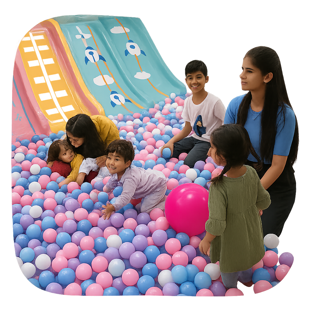 Bright, safe, and bouncy — where tiny tots explore tunnels, slides, and ball pits while parents relax knowing they’re in good hands.